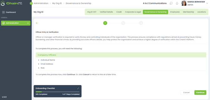 - All officers will receive an invitation to create a ChainIT ID for identity verification.