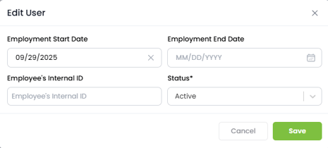 - Employment Start and End Dates